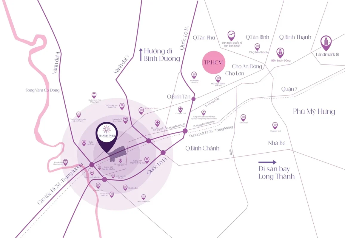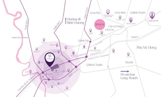 Di chuyển thuận tiện đến Quận 1 thông qua trục Quốc lộ 1A và các đại lộ huyết mạch.